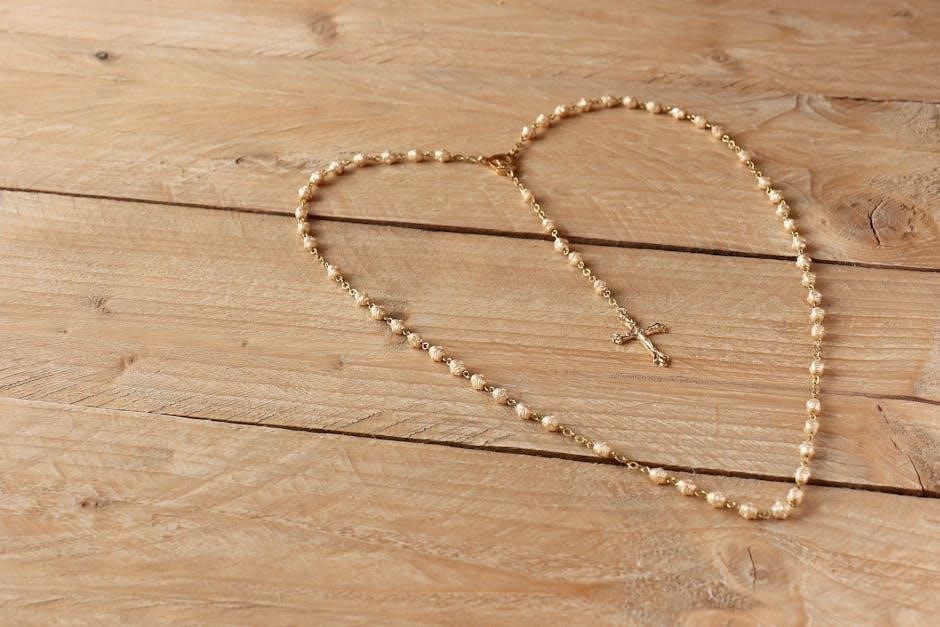Reflecting on the purpose of reciting the Servite Rosary is essential to deepen its spiritual impact. This prayer is not merely a recitation of prayers but a meditation on the sorrowful events of Mary’s life. By contemplating her sufferings‚ you invite her maternal love and intercession into your life. The purpose is to connect with her compassionate heart‚ seeking solace‚ wisdom‚ and strength. It is also an opportunity to express gratitude for her unwavering faith and to grow in empathy and understanding of Christ’s sacrifice. Reflecting on the purpose helps you approach the rosary with mindfulness‚ ensuring that each prayer is a heartfelt dialogue with Mary. This intentional focus transforms the prayer into a powerful means of spiritual growth and devotion. It is a moment to surrender to her guidance and embrace her sorrowful yet transformative love.